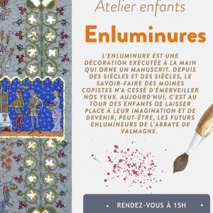 L’enluminure est une décoration exécutée à la main qui orne un manuscrit. Depuis des siècles et des siècles, le savoir-faire des moines copistes n'a cessé d'émerveiller nos yeux. Aujourd'hui, c'est au tour de vos enfants de laisser place à leur imagination et de devenir, peut-être, les futurs enlumineurs de l'Abbaye de Valmagne. Pendant cet atelier qui aura lieu, le samedi 12 novembre à 15h, chaque enfant pourra créer sa propre initiale ou celle de son choix qui sera décorée selon son…