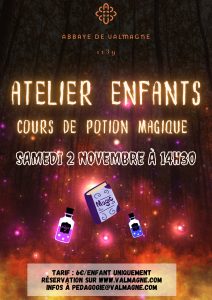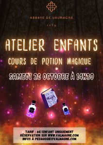 Entrez dans l'univers enchanteur de la magie avec cet atelier unique ! Avec Clémence notre responsable pédagogique, vos enfants seront initiés aux secrets des potions magiques en apprenant à mélanger des ingrédients mystiques tels que la poudre de perlimpinpin, la mandragore et bien d'autres surprises. Chaque petit sorcier et sorcière créera sa propre potion en fonction de thématiques fascinantes : la potion d'Amour, de Beaux Rêves, de Chance et bien plus encore ! À la fin de l'atelier, chaque participant…